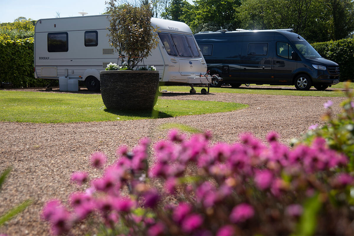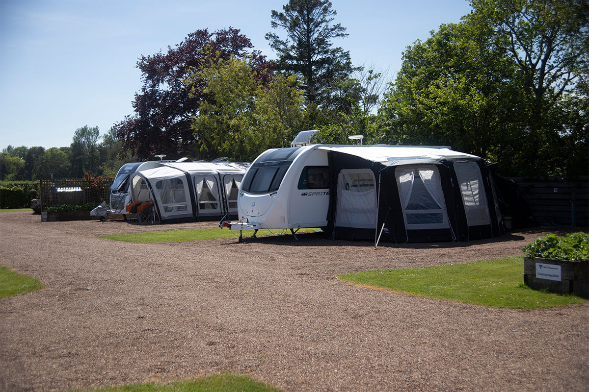 Our peaceful, adults only site, is tucked away on the south bank of the river Tweed, just inland from Northumberland's magnificent sandy beaches and rugged coastline. We have 16 large, level, hardstanding pitches, for caravans and motorhomes. Each pitch is supplied with its own electric and water point.